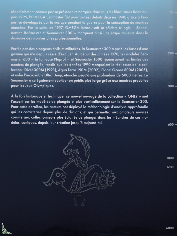 À la fois historique et technique, ce nouvel ouvrage de la collection « ONLY » met l'accent sur les modèles de plongée et plus particulièrement sur la Seamaster 300. Pour cette dernière, les auteurs ont déployé la méthodologie d'analyse approfondie qui les caractérise depuis plus de dix ans, et qui permettra aux amateurs novices comme aux collectionneurs plus éclairés de plonger dans les méandres de ces modèles iconiques, depuis leur création jusqu'à aujourd'hui.